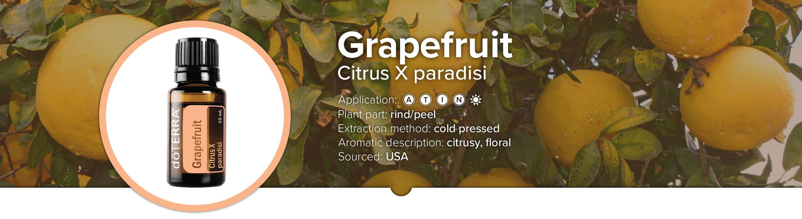 The grapefruit, or citris X paradis, is a large, round orange-like citrus fruit. The oil is collected from the grapefruit peel by method of cold-pressing. Its most popular uses range from diffusing, to skincare, and household cleaning. Given its broad array of perks and uses grapefruit oil, has become the “go-to” essential oil for many.