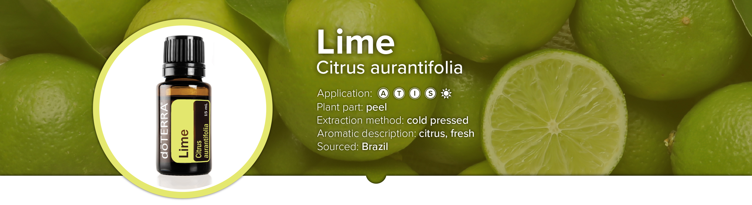 Lime consists of beta pinene, which has been shown to have positive effects on the brain’s chemistry. Its other main chemical component, limonene, contributes to its invigorating aroma and powerful cleaning properties.