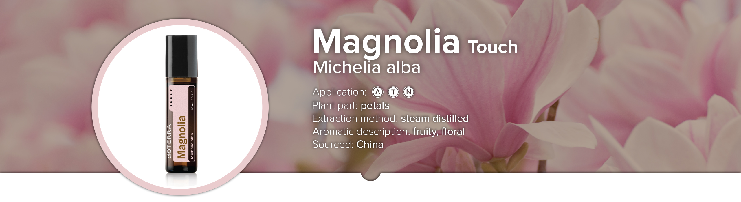 - To soothe tension: roll magnolia touch onto palms, cup hands over nose, and inhale.