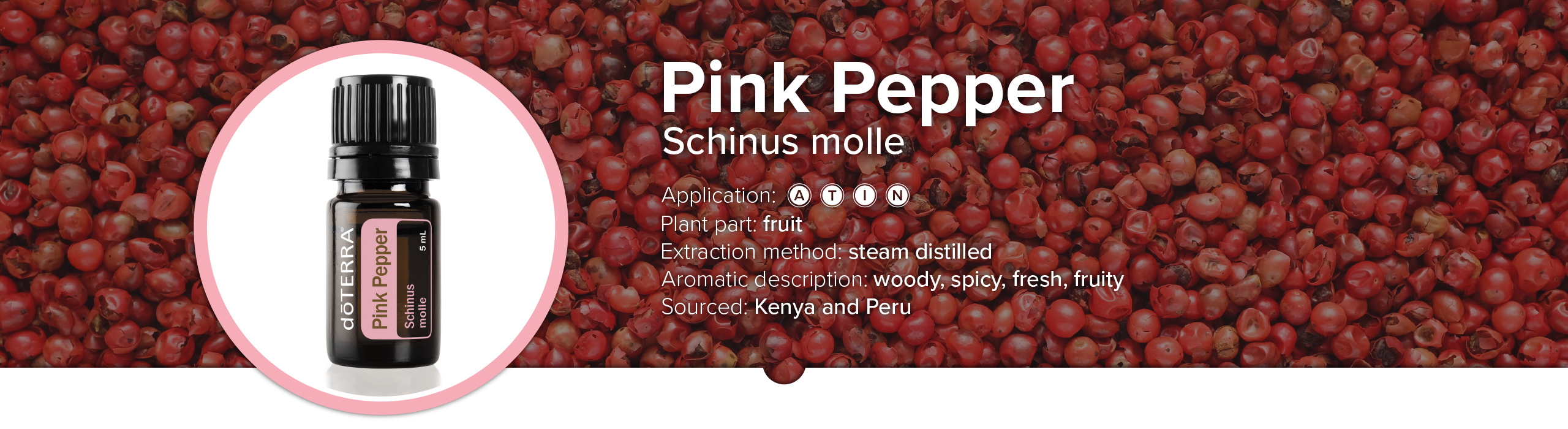 Pink pepper essential oil has been renowned for its powerful health benefits. The tree is very similar to the black peppercorn tree with the exception of it’s pink color. When ingested daily, pink pepper can support immune, digestive, metabolic and cellular health. Pink pepper’s primary chemical composition of limonene and α-phellandrene promotes relaxation by supporting the nervous system, and may support healthy cholesterol and blood sugar levels when ingested regularly.